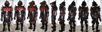 Your armor reminds me of the Daedric Armors of the Elder Scrolls games and that is definitively a compliment!