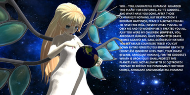 *Opens portal and confronts her* Earth Chan I am having a hard time so give them mercy or die