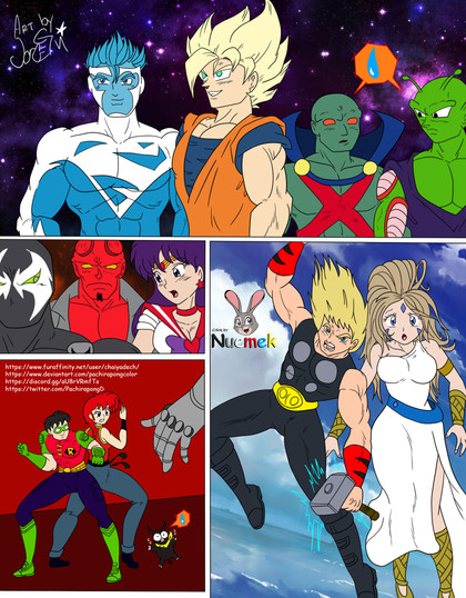 man this took a long time to draw and color, also sorry if i didn't add liaz's matrix arcana but i forgot and realised too late, it was really hot and stressful for the last couple of days and my mind was all over the place.also if you're confused at what's above the girls, well those are different worlds, timelines and events that happens across the multiverse, dc is with marvel, goku ssj4 BEATS goku blue, todoroki is talking to iceman about something VERY important and a lot more events that's taking place that the viewer can't see, and liaz is projecting all of that from her monitor as you can see.