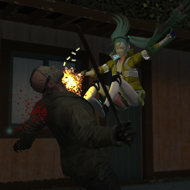 i can't stand ruby rose, it only seem's like she's good for fanfic's, terrible shipping's and a tool for fanboys to whack off to which is really sad seeing how that's the only thing going for her because at this point she's pretty much fan service material, so ruby rose is once again like many ("a wasted character", even though she got a little bit of character development in vol 6 she's still already too far gone to bring back.)anyway, so i've seen this weird looking ruby model wearing some what looks to be work out clothes but it seem's like it was meant for porn renders, lol is it bad enough that people use her original model for this exact thing but now they made a whole brand new model (that looks like a pixar character) for the soul purpose of getting raped. so i decided to have leon drop kick this sorry sack of shit of a character.