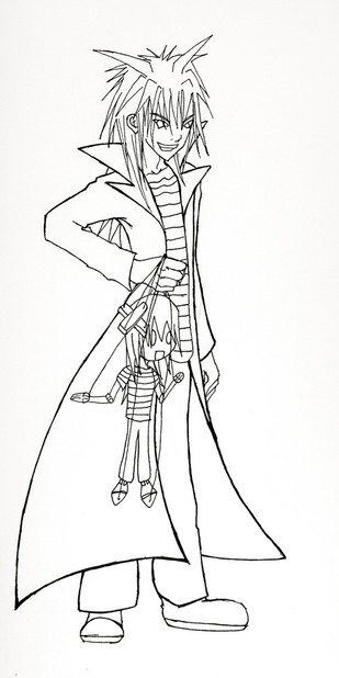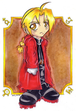 I swore I wouldn't do it again. I said, 'Self, this is too time consuming. We can't spend so much time doing something like this when we have real pictures to finish.' And I agreed with myself, and laid of oekaki. Forever. Or so I thought. -__-;On the plus side, this took about five minutes, from the first thought of 'Oh well, it couldn't hurt...' to the katakana and my little signature in the box. Iffen ye cannae read th' kana, it just says "Naruto." For people who couldn't guess who the cute blond thing is. ^.^