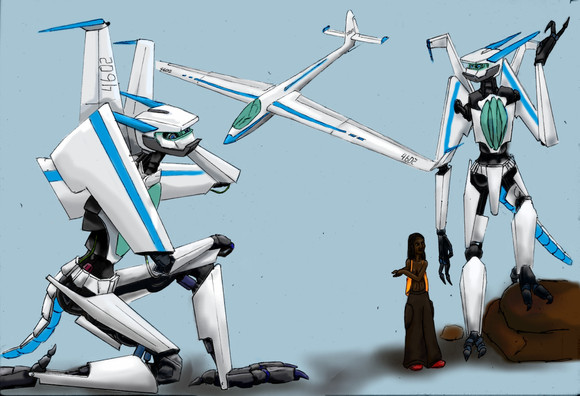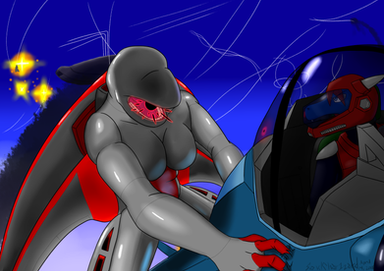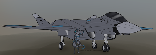 An early piece of Githzar, back before I finalized his appearance, with his partner and my friend's F-18 aeromorph, Rán. They work together as part of a special forces unit, The Kaiju Anomaly Defense, for taking down Godzilla-type threatsI do enjoy them as a pair and might do more with them in time