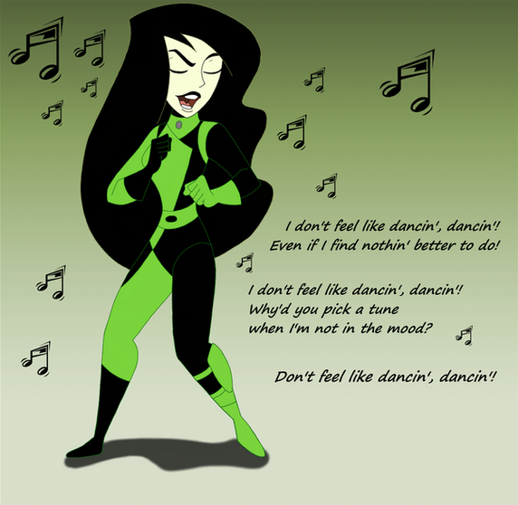 I know it doesn't take a lot to make Shego cranky, but Kim might've said something completely inappropriate to her just now... Use your own imagination, 'cause mine's too dirty.I'm thinking about Shego singing and dancing, what are you thinking about?