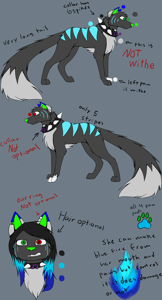 he is very insecure, since he was younger, other kids made fun of him because he was child of a canine and a feline (wich in this world is seen as a bad thing), he always tries his best to hide his markings.