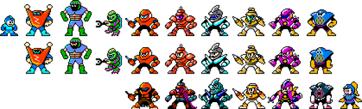 ("Mega Man" series: Owned by Capcom)Here are some Jiro robots I came up with a while back. The original plan was to make some sprite sheets of each one, but then I thought "ah, screw it" and make individual sprites of each one.