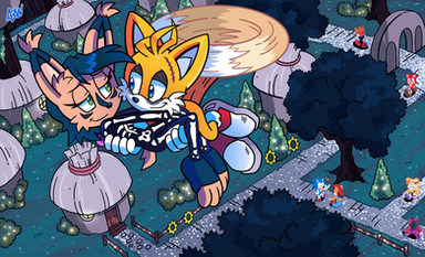 (Tails carries Fiona towards Freedom HQ, EarthBound style.)