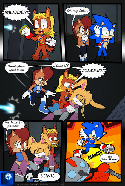 You've proven that you are truly gifted with comic-style artwork by drawing great sequences here. Cute touch to include Nicole assisting Tails in her own way. Also great to see Fiona with her gentler, non-spiky haircut and yellow jumpsuit. As for the finale, Tails is gonna wake up with an angel watching over him. He's adorkable, a cute nerd with his techno ingenuity. Blue ribbon to you, Azure, for your most wonderful artwork of the foxy Mobian pair we love and faithfully support!