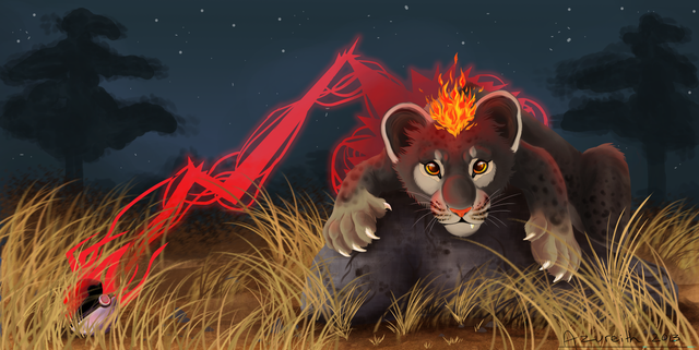 Azrith, the Elder(and adopted father/mentor) of, Night, telling a story to her using the magic he posses to create images in the fireI had this idea for awhile! Im glad i finally got it out even if i wasn't sure if i could get the perspectives right. It was a real challenge trying to get the right shades highlights of a white character in the firelight. I think the warm and cool colours look kinda nice together :3 And little cub Night is so cute haha