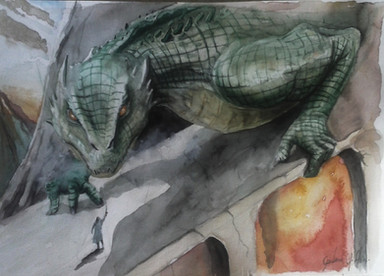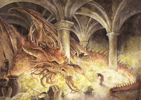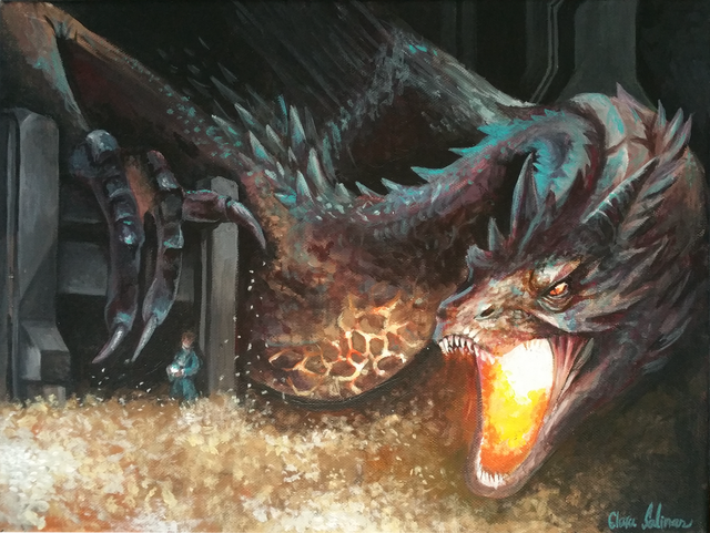 #erebor #gold #arkenstone #desolationofsmaug #hobbittrilogy #bilbo #bilbobaggins #dragon #fanart #fantasy #firebreathing #hobbit #hobbitfanart #painting #pillars #smaug #terrifying #treasure #watercolor #firebreathingdragon