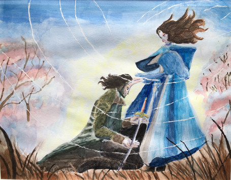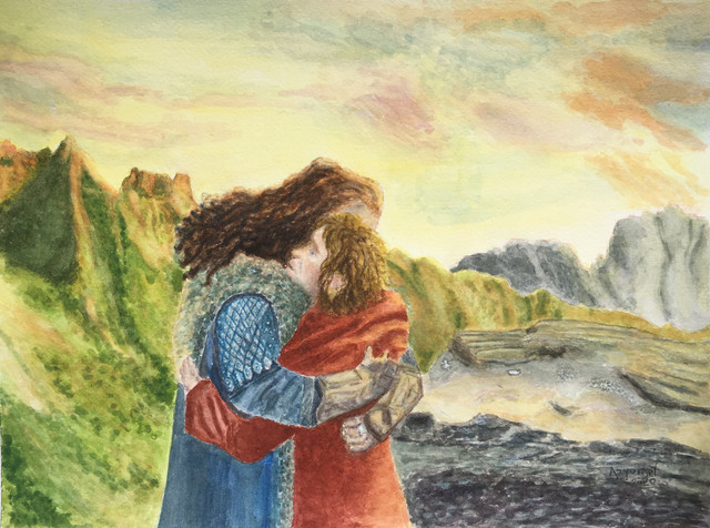 A painting of one of my favorite scenes from The Hobbit 2: The Desolation of Smaug, where Thorin meets Thranduil in the Woodland Realm. I tried to capture the moment when, after hearing Thranduil say "You have my word, one king to another", Thorin gets ready to lash out at him.