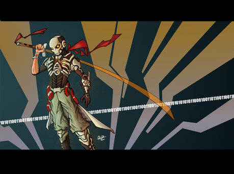 That's a neat design! I like the texture work you put into it, really makes it look like hes been around for a little while.