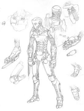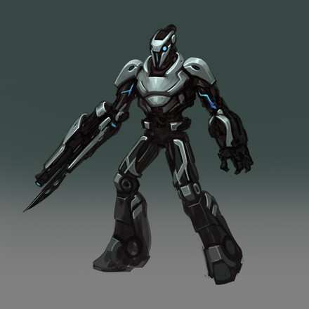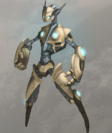 Haven't painted anything for a while, so I thought I'd get back into it with a re-do of Blaise. Again.I've developed the backstory a bit more, so its design's changed a bit. Instead of being a nuts-and-bolts creation, it's a prototype for a line of war robots intended to be mass produced, so I gave it a more robust design.