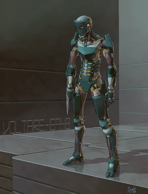 It starts off knowing just about nothing except how to fight and handle a large database of weapons, but being a robot it learns a lot very quickly. Voltaire's intervention (which involves some hacking) also gives him access to a huge encyclopedia of information, and prevents him from being shut down by ACE's remote kill function.