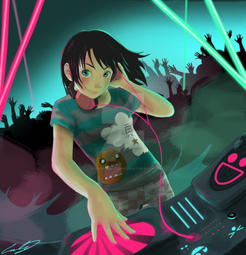 I think I can safely say this is a drastic improvement over everything I've done before, thanks to many sources of inspiration. Ironic, though, that the actual subject of this piece has been done to death already and is thus friggin uninspired (DJ? In 3/4th perspective? >_>''...)