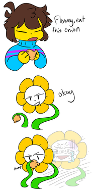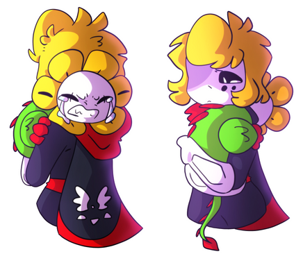 Red holding FloweyAsriel did the illegal and did underage drinking so Red snatched his SOULS and now he’s a Flowey again