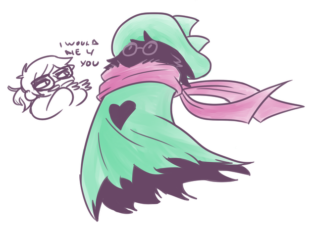 If any of you are confused, basically Flowey is pretending to be Ralsei. With his great acting skills, heβs tricking Kris and Susie that he actually is Ralsei. Of course, Flowey is not Ralsei, as Ralsei and Frisk are hiding behind a tree watching all this happen.