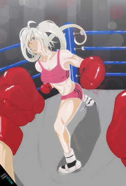 I remember seeing this girl on a manga/doujin site fighting that red haired girl.