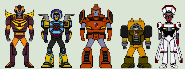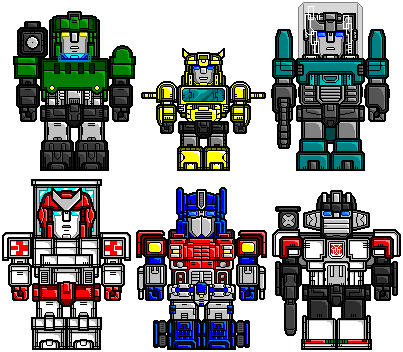 From left to right, top to bottom, Vortex, Roadblock, Stockade, and Flare Up.This is my take on Griffin Rock's emergency service's vehicles/'bots in SoundBluster 's Shattered Glass universe. Feel free to give suggestions for the other half of the robotic portion of the cast.