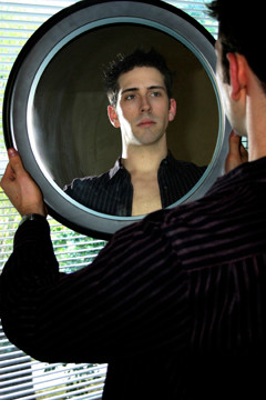 oh wow, at first i thought it was an actual reflection then i looked closer and i think just...wow...i mean clearly he is wearing a football jersey but then to see tht in the mirror is like...proving not all football players are total meatheads, some really do struggle with things, thank god for you, this is amazing and the photography is stunning, i think it sends out a powerfull message, kudos to you my friend