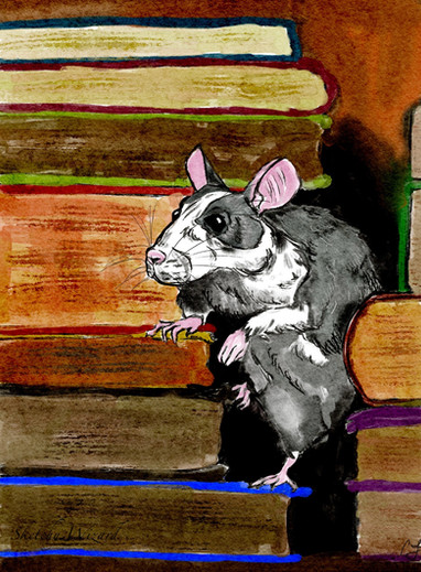 #traditionalart #animal #books #bat #cute #glasses #library #reading