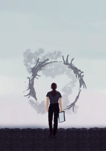 When there is a lack of trust and only emptiness remains, the world turns into desolation and only its aplocalypticity remains...I made a sketch on paper, which resulted in a character of my own, and then continued to create it digitally in Krita.
