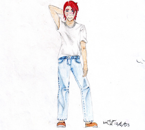 The green shirt looks wicked, hence, it took a lot of time. You are very good with coloured pencils. But don't hate CG forever...I don't really like the "three-dimensional-ish" CG colouring myself (maybe it's because I SUCK), but after much much messing around on Photoshop, I'm beginning to see there is more then one way to paint with the thing...