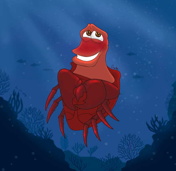 #crab #digital #disney #fanart #sebastian #villainous #ariel #crustacean #littlemermaid #middlefinger #ugly #villain
