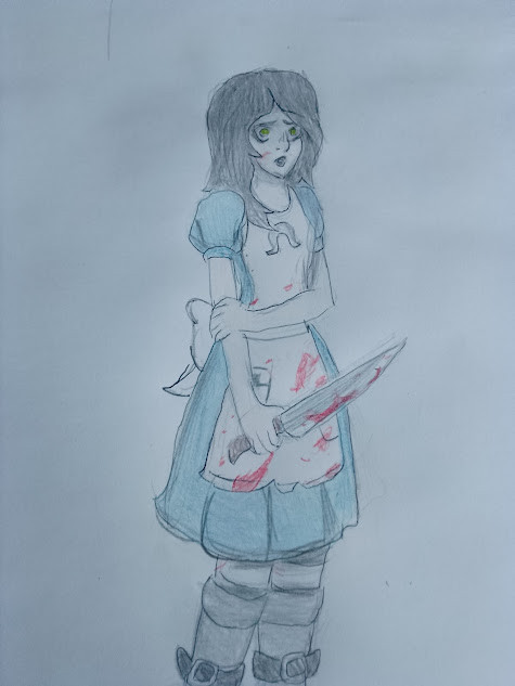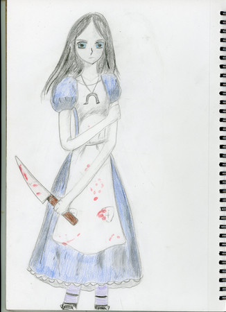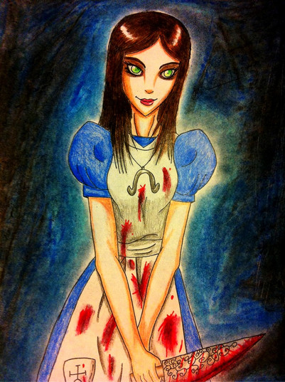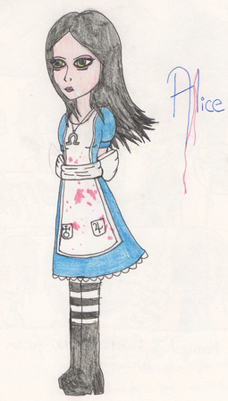 Alice Liddle from American McGee's Alice and Alice Madness Returns. I made a big mistake when i colored her. Her top half was supposed to be white. But it still came out good. Enjoy :3Alice Liddle c) Lewis Carrol