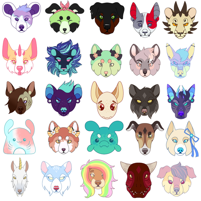 A "sticker sheet" of all my feral characters!!