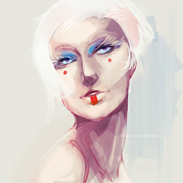 I love the tones overall and the thick, textured look the hair. I have been trying forever to draw the sleazy, half opened eyes correctly so this was helpful for that too. c: