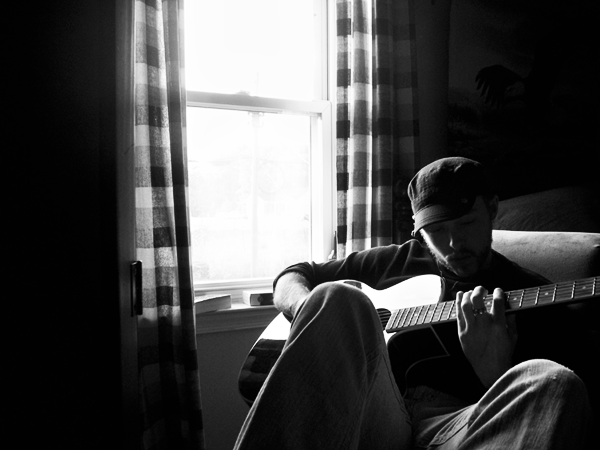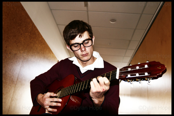 This is a wonderful shot. I love the juxtaposition of light and shadow. It is posted as your ID but your face is mostly in shadow. It is mysterious and interesting. I also like the movement of your hand. It shows you are actually playing the instrament and not just using it as a prop. It's very honest and endearing.