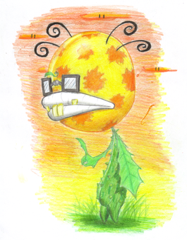 Razorbeard from Rayman.The writing says "I am Machine" which is a song title by Three Days Grace. It's a great song and inspired me to do this. Its supposed to be Razorbeard having some sort of crisis, his arm has come off and one of his eyes has been smashed. To make things worse he's leaking oil.