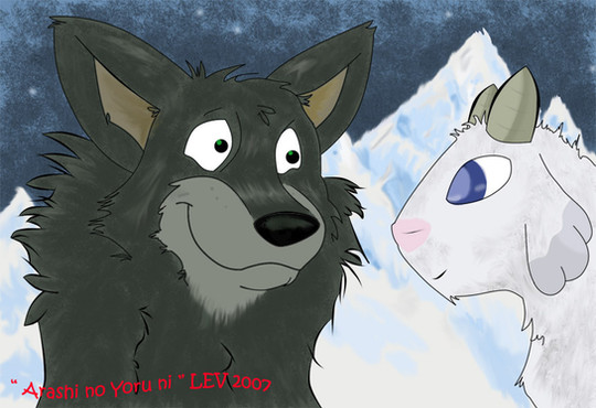 So I watched this film a few months ago and have pretty much fallen in love with it. If you have not seen it I would recommend it. This is Gabu (the wolf) and Mei (the goat) from One Stormy Night.I don't own One Stormy Night or any of the characters, they belong to Yuichi Kimura and Kodansha