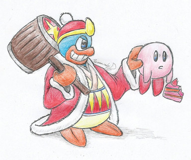 I used to watch Kirby Right Back At Ya (Hoshi No Kaabii) when I was younger and recently, I came back to it.Β Probably as an escape from exams, but since they have finished I had time to draw this. This isn't an actual scene from the anime but I wanted to make up my own little sweet moment with these two as I ship Dedede and Escargoon. Haha.Anyway, the story behind it is that the two of them got lost in the woods and were attacked by woodland creatures, but Dedede was able to scare them off and leave with his snaily servant.