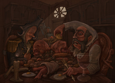 I would create an image rather different from yours in content and meaning, but I would utilize the compositional structure and color pallet you have used here. I would need to make color prints for reference.