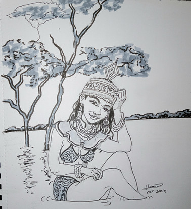 My drawing version of the Golden Woman from Jibaro. I've seen a concept art of her, and she was naked like sirens in the Greek mythology (lured sailors into sea). It was beautifully animated allegory of love, greed and human nature. so much is said with absolutely no words being spoken. By far my favorite episode of Love, Death + Robots season 3 on Netflix.Related content