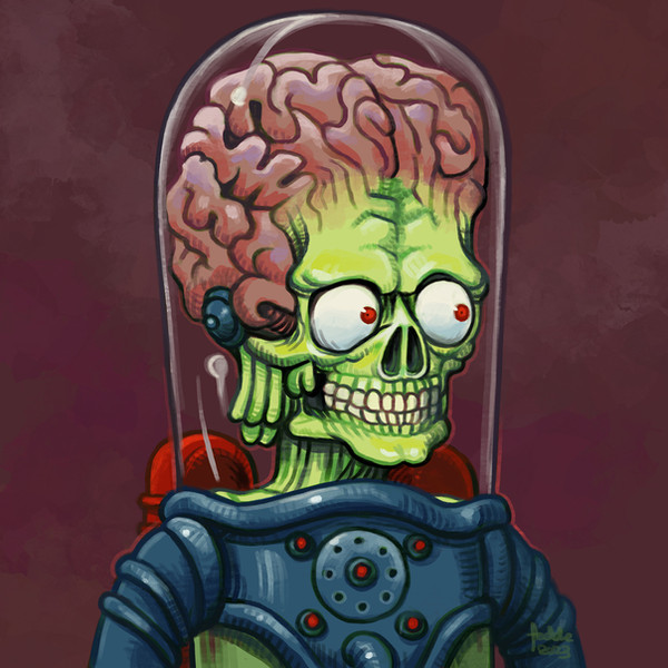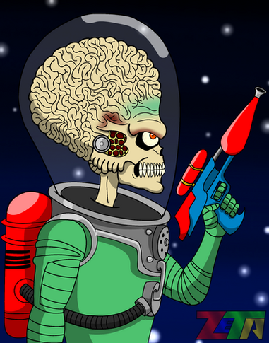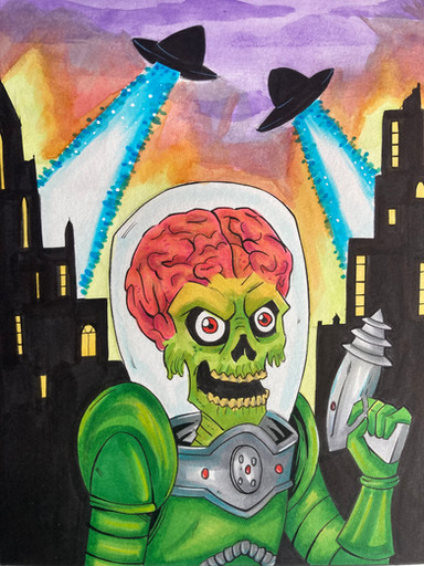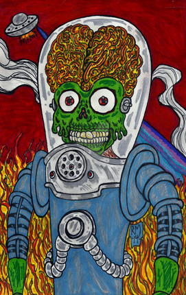 Taking a break from before doing final pages tomorrow for July challenge.here's fan art of Mars Attacks, one of my favorite aliens. I have a large collection of Mars Attacks trading cards and comic books. I like Mars Attacks movie from 1996.