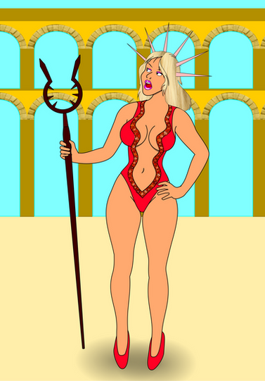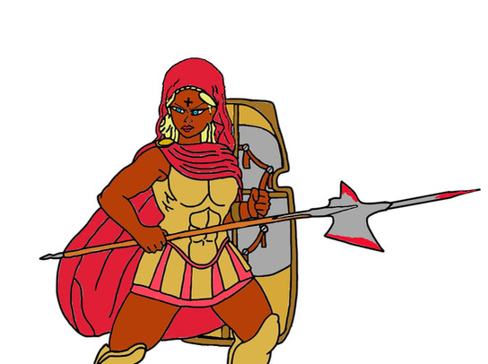 Queen Xal checking the weapons and armors at the warehouse to get ready for the war.The character Queen Xal is owned by