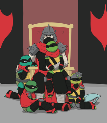 Wow!Β Bet Leo was sick once he came to his senses and realized that he had taken side with Shredder against his brothers!Β You art is awesome - so grim!