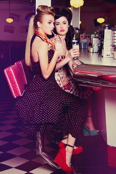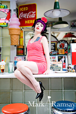 I like this a lot. It looks like a combination of vintage pin-up girl photos and cross processed photography. It's also nicely shot with a low down vantage point.