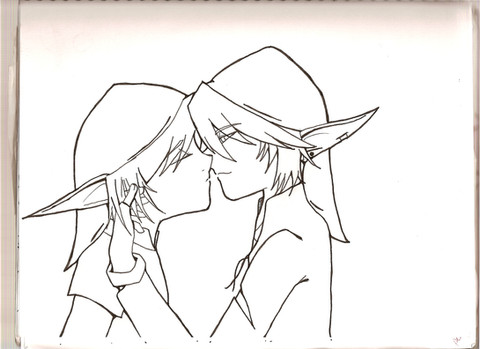 Psh. I don't know what you're talking about. This makes perfect sense, like my drawing him nude in my Calvin Kleinesque modeling series. Link on Link? Hells yeah, I approve! Come to think of it, Skyward and Ocarina Link would make for some hott action... and all their hairstyles and hair color are different enough to differentiate them from each other even without clothes, even in B&W actually. Any Link fan should be able to tell. Yeah, adult Links FTW!