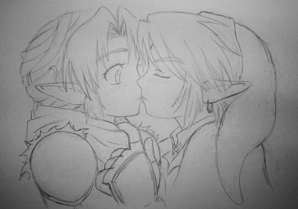Well, this is me being weird and pervy as usual. Twilight Princess Link X Ocarina of Time Link just because I can apparently lol. I know, it makes no sense.Related content