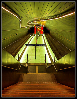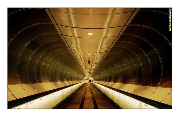 great perspective, its not often you see examples of rounded perspective, the shadows made by the lights really contribute to the perspective's effect as well. im always a fan of the yellow and black as well.