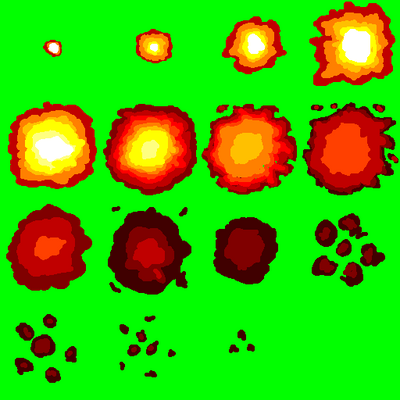 Well, there's another way to make it have a much more intense boom by just adding a completely white frame, or maybe deleting some frames to make the explosion go faster (and maybe both!). At the moment, the thing that kindah got me is how sluggish the explosion is after the first 2 or 3 frames, making it look a bit too slow for an explosion. Again, I think it's too many frames.