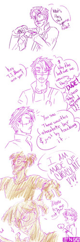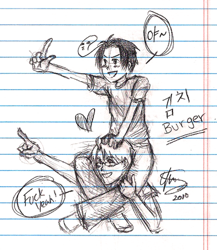 [EDIT 3/29/2010]: I am aware of how stupid this is and how out of character these two are. I drew this on a whim when I was 15-16 years old. This portrayal does not reflect on how I view Roxas and Axel today. I'm merely leaving this here for posterity's sake.