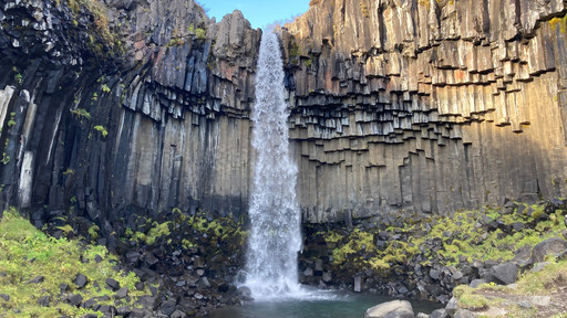 Cascade au dessus d'orgues basaltiques - Iceland - Aout 2008Panorama de 7 photos