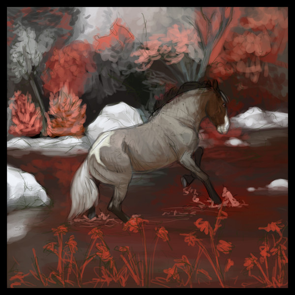 the colours look so soft and work so well together damn impressed how realistic his coat looks in your style : D wow. I absolutely love this picture x3