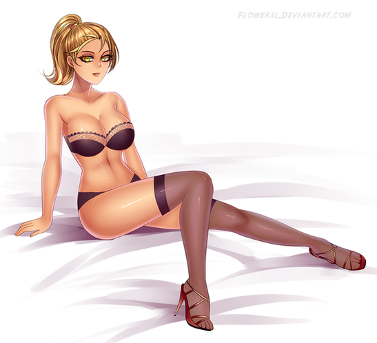 Wow, great piece! Her hair is outstandingly well coloured, and I'm loving the fact that you've used different textures for the lingerie.
