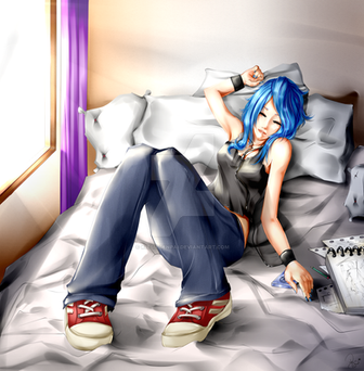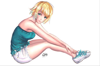 In Bangkok Summer season is passing to Raining season.My friend Akizone painting a girl in summer time I want to do it too.^^