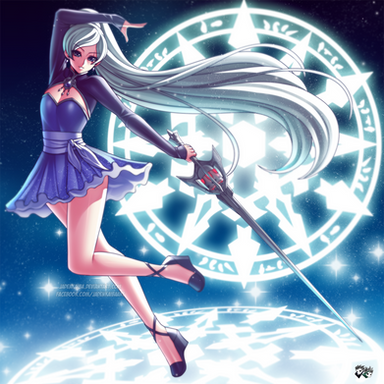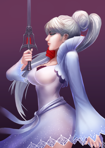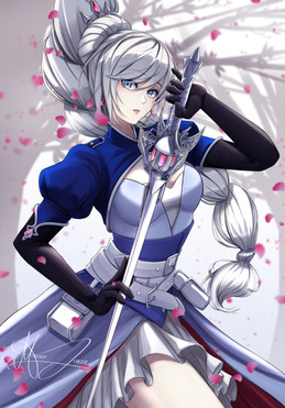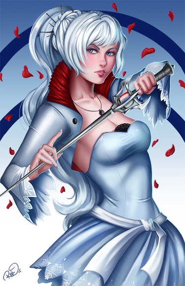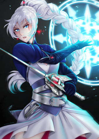 Something about the lines on the sword doesn't quite work. I'm not an artist, so I don't really have any words for it, but it looks a little fake. If I were to nitpick, I'd call out the lack of a scar on her face. My real problem, though, is her face. It's artistic, even beautiful, but it seems expressionless. That makes it seem not like Weiss, who's a person constantly failing to suppress emotions.
